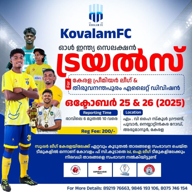 Kovalam FC Kerala Premier League Selection Trials October 2025